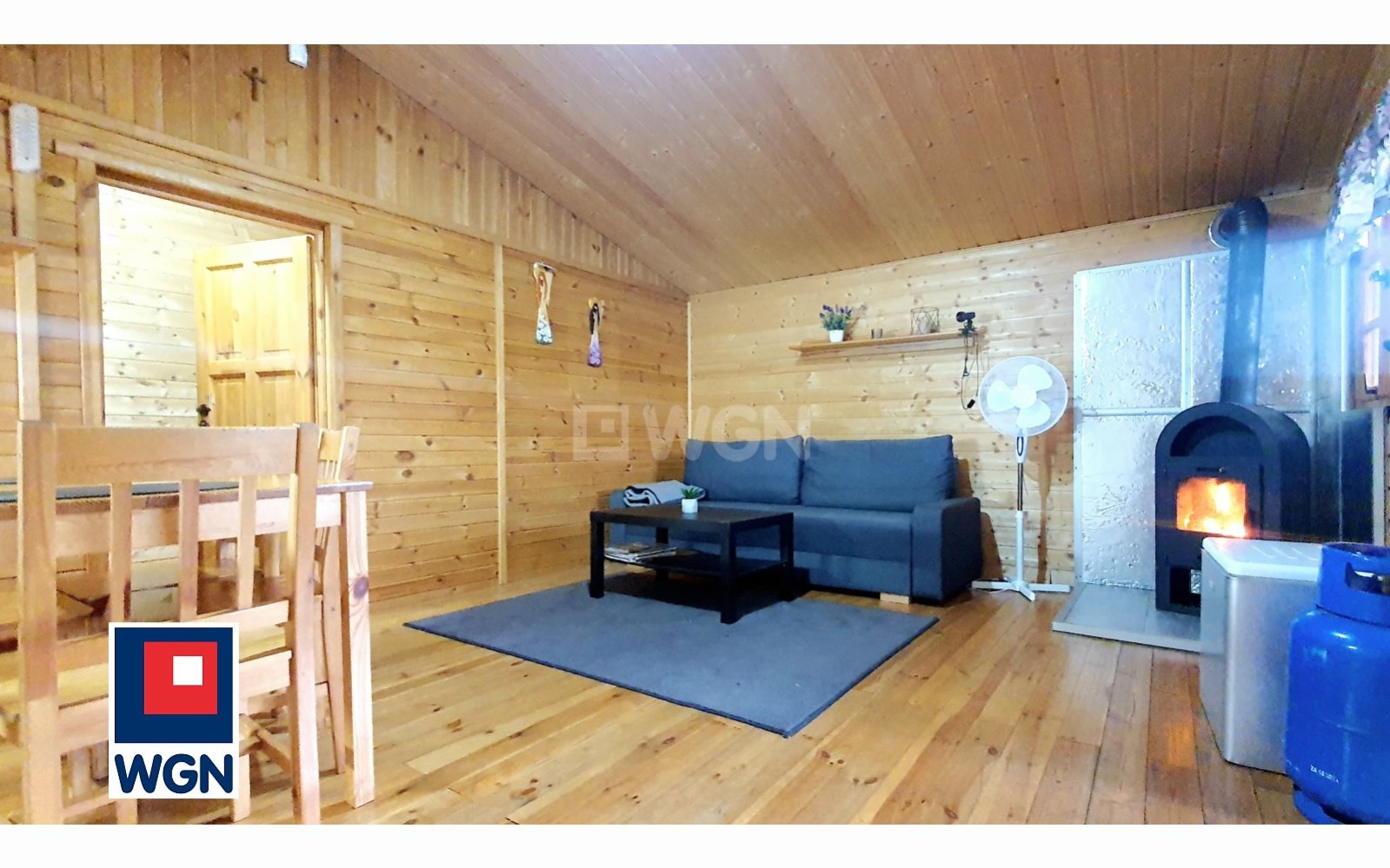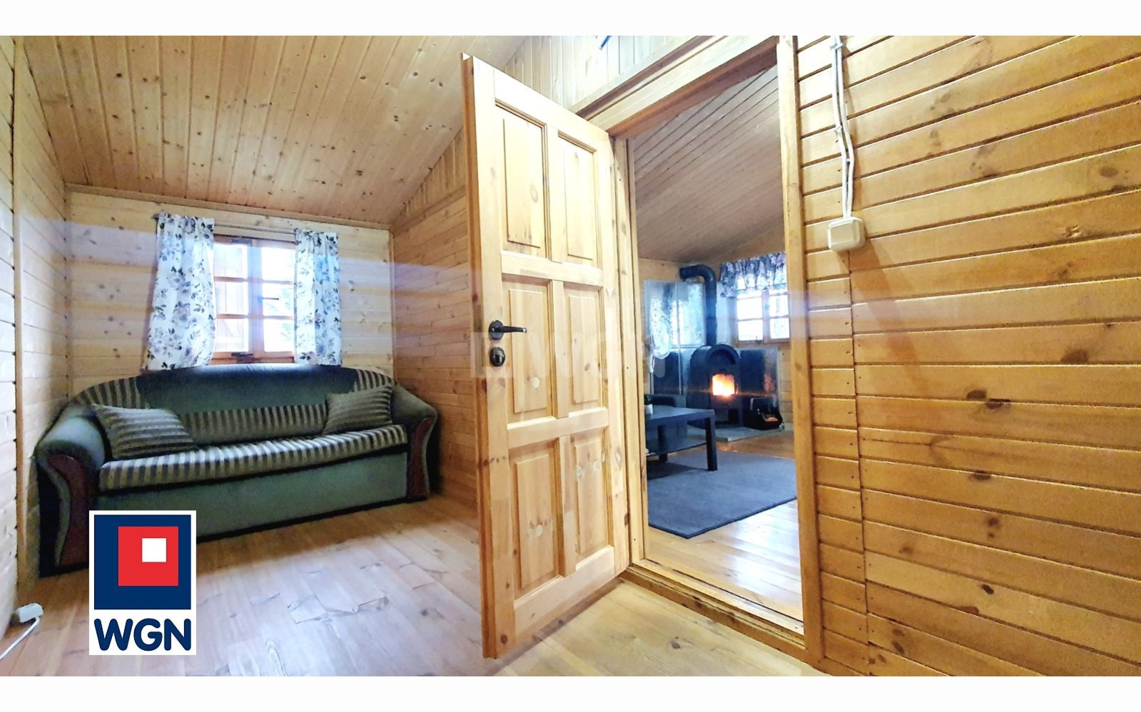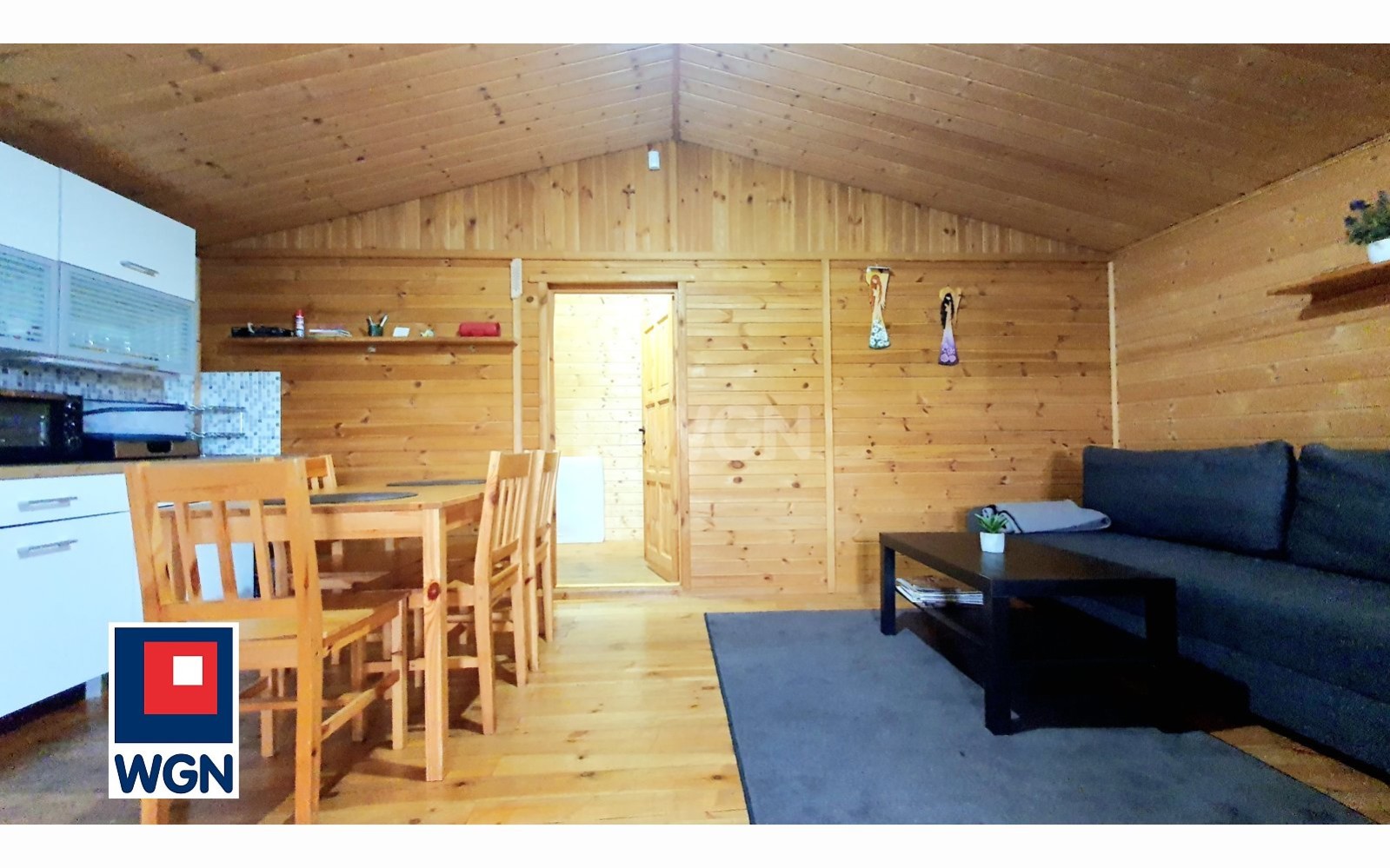 Na działce znajduje się przytulny, drewniany domek o powierzchni 36 m2, wybudowany w 2014 roku, a w nim: